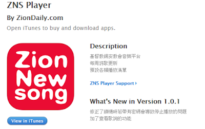 第一個最簡單又安全的方法,就是使用蘋果公司的App Store,下載 ZionNewSong Player。